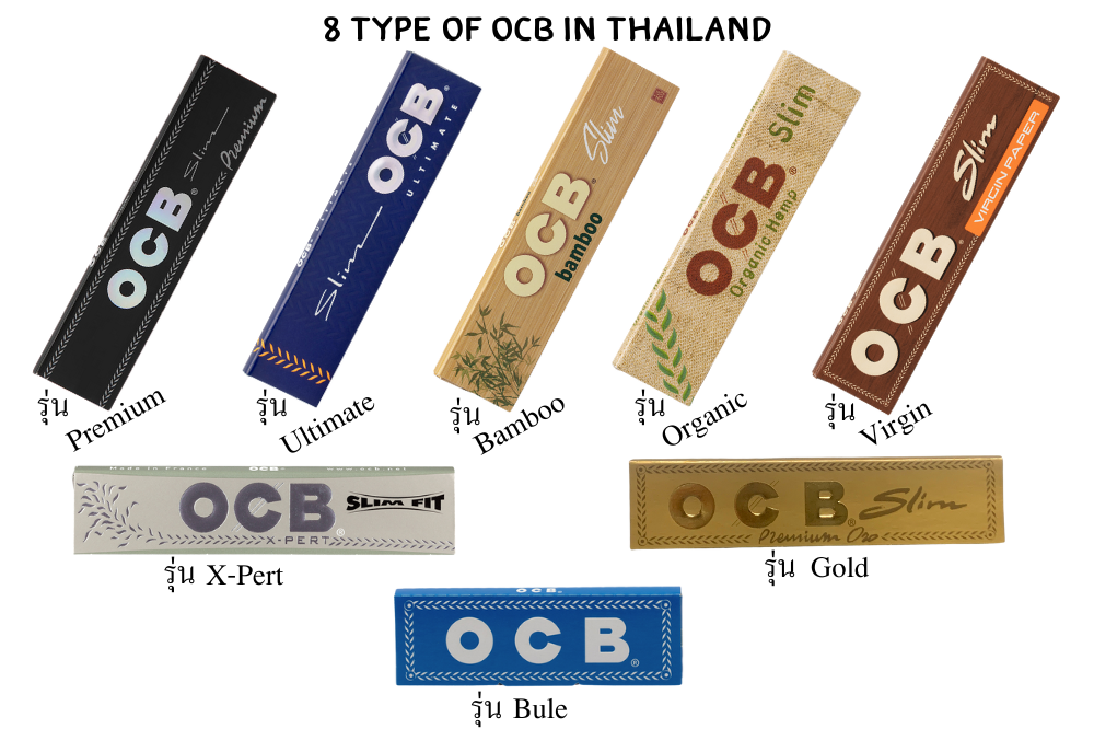 กระดาษ OCB มาทั้งหมด 8 ประเภท แบ่งเป็น Premium, Organic hemp, Ultimate, Bamboo, Blue, Virgin, Gold และ Xpert