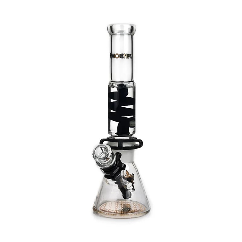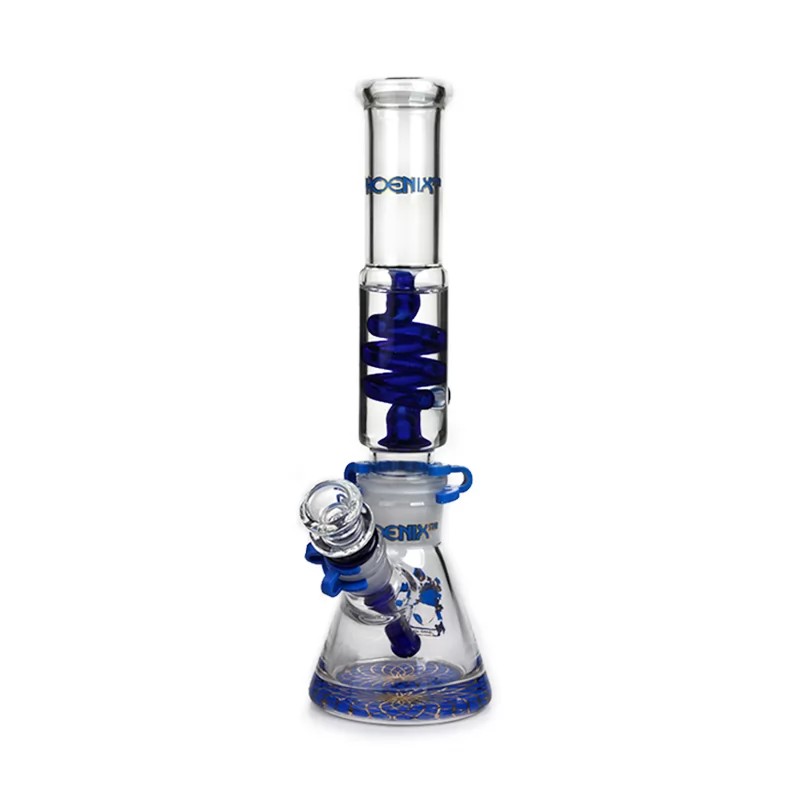 บ้องแก้ว บ้องกัญชา บ้องแก้วทรงบีกเกอร์ พร้อม Glycerin Coil หรือคอยด์เย็น บีกเกอร์คือทรงยอดฮิตและทรงจบ ผลิตจาก แก้ว Pyrex หรือ Borosilicate​ glass