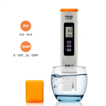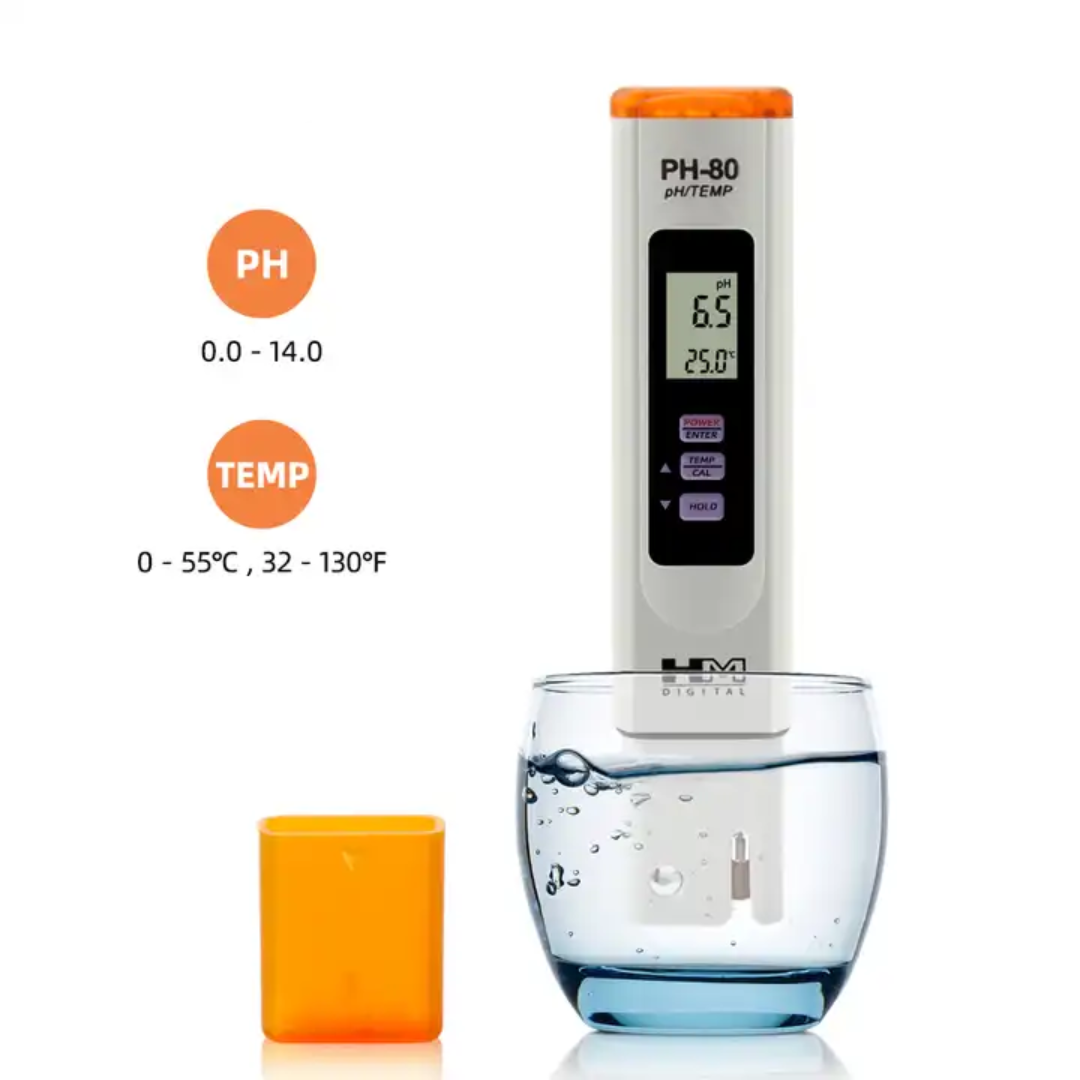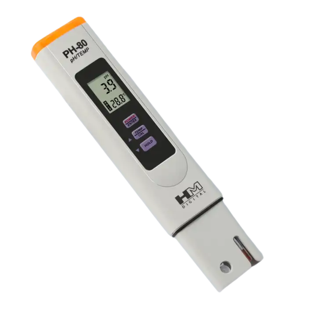 PH-80 จาก HM-Digital เป็น pH มิเตอร์แบบกันน้ำ ใช้สำหรับทดสอบค่าความเป็นกรด เบส เหมาะสำหรับทุกการทดสอบค่าความเป็นกรด เบส ได้แก่ทดสอบน้ำที่ผ่านการกรอง ควบคุมน้ำเสียเพาะเลี้ยงสัตว์น้ำ ไฮโดรโปนิกส์ ห้องปฏิบัติการและการทดสอบทางวิทยาศาสตร์ สระว่ายน้ำ สปา การทดสอบนิเวศวิทยา การเกษตรและอื่น ๆ