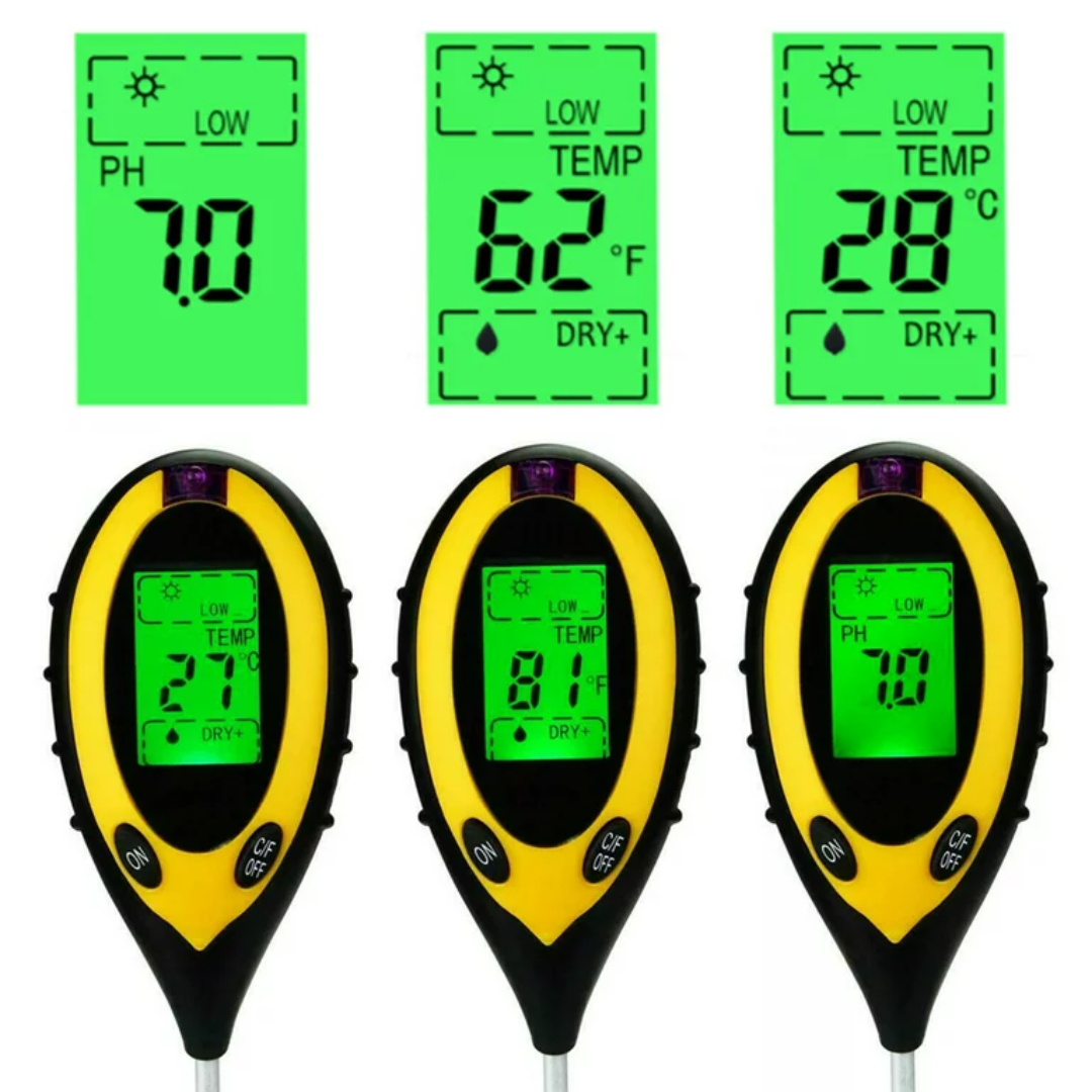 4 in 1 ดินค่า PH น้ำความชื้นเมตรพืชสวนดอกไม้ชื้นทดสอบคุณภาพน้ำพืชไฮโดรโปนิกส์การวัดวิเคราะห์เครื่องทดสอบความสว่างเครื่องมือวัดดิน 4-in-1: IT สามารถวัดดินค่า PH,ความเข้มของแสงแดด,ความชื้น, อุณหภูมิดินและสิ่งแวดล้อมตัววัดความชื้น