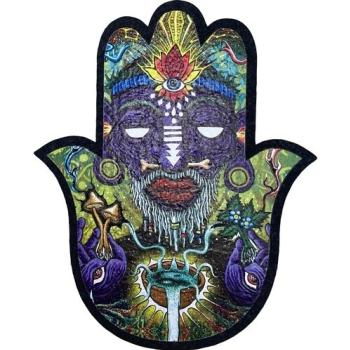Die Cut Hamsa Dab Mat with Witch Dr. Design by Artifakt Studios - Ryan Gardell. Approximately 10” tall by 8” wide.