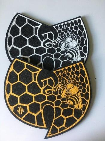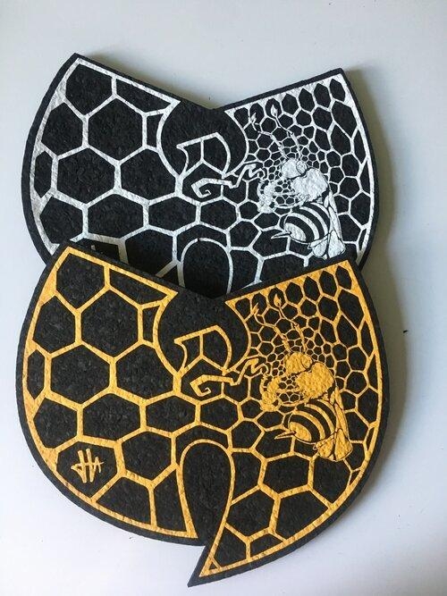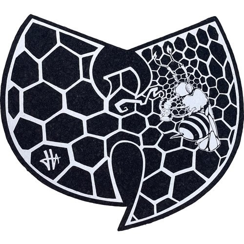 Save the Bees! This die cut Wu shaped mat is decorated with art by Heilig and printed on East Coasters recycled rubber and measures close to 12”. Available in gold.
