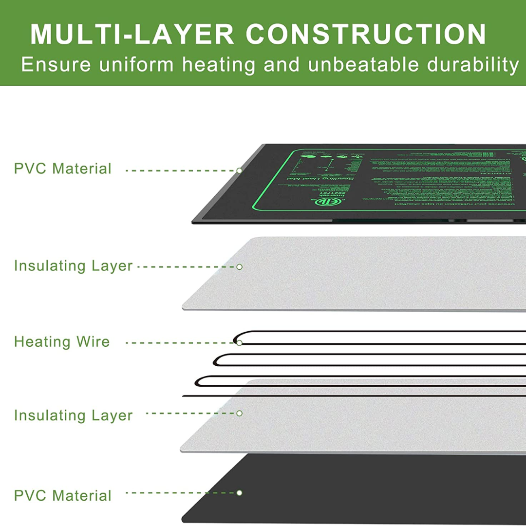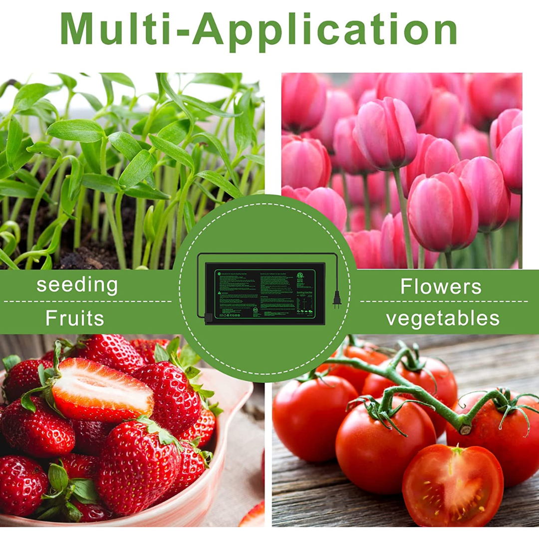 【ระบบทำความร้อนแผ่นทำความร้อนไฮโดรโปนิกของต้นกล้าสามารถให้อุณหภูมิเหนืออุณหภูมิห้องได้ 40°F~50°F แม้กระทั่งความร้อน เหมาะสำหรับการทำสวนในร่ม ส่งเสริมการเจริญเติบโตของพืชและการงอกของเมล็ดดอกไม้ นอกจากนี้ยังสามารถใช้ในกรงสัตว์เลี้ยงและภาชนะแก้ว เช่น สำหรับสวนขวด สำหรับสัตว์เลื้อยคลาน สัตว์ฟันแทะ และงู