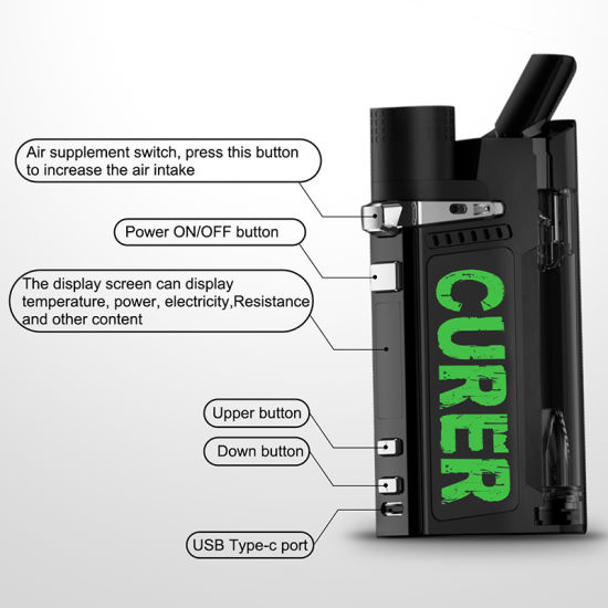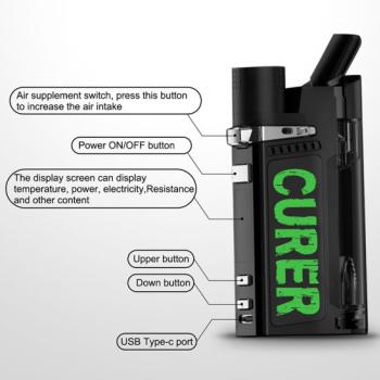 LTQ Vapor CURER Kit is a high-end, easy-to-maintain, portable dry combustion device that can produce excellent Vapor or atomization quality, and offers stainless steel, ceramic, and quartz coil options. There are two heating methods for you to choose from power mode and temperature mode. The temperature mode has a temperature control function; a Built-in 1500mAh battery and power mode can be adjusted from 5 watts to 35 watts (Note: when pumping oil directly to the dedicated mode 10W, adjustable range of 5-11W), to meet your needs. Surprisingly, it has a unique filter tank, which not only produces cool and pure steam but also filters out impurities during inhalation. What is more surprising is that it has a unique function, which is to replenish air. Gently press the button in the inhalation process, instantly increase the airflow, bring ultra-strong smoke, take away the residual smoke in the tank, and let your enjoyment reach its peak!