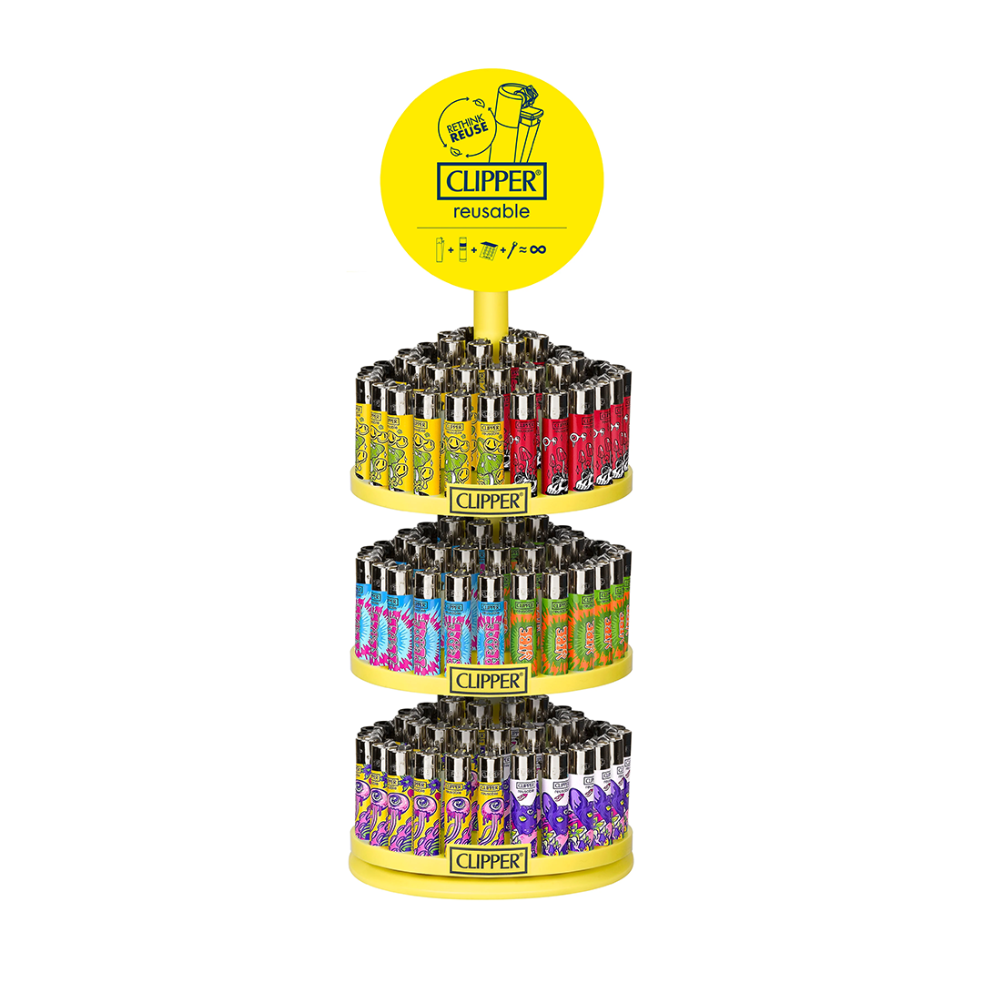 A spinning carousel of various colors and styles for the Clipper Classic Large lighters.