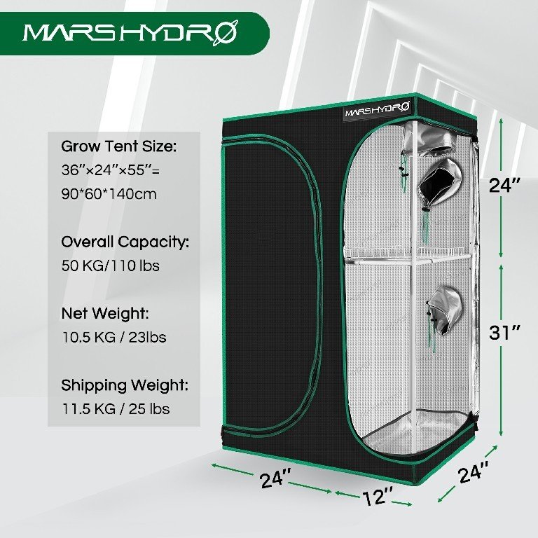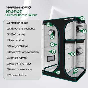 MARS HYDRO 2 IN 1 GROW TENT - 90X60X140 CM