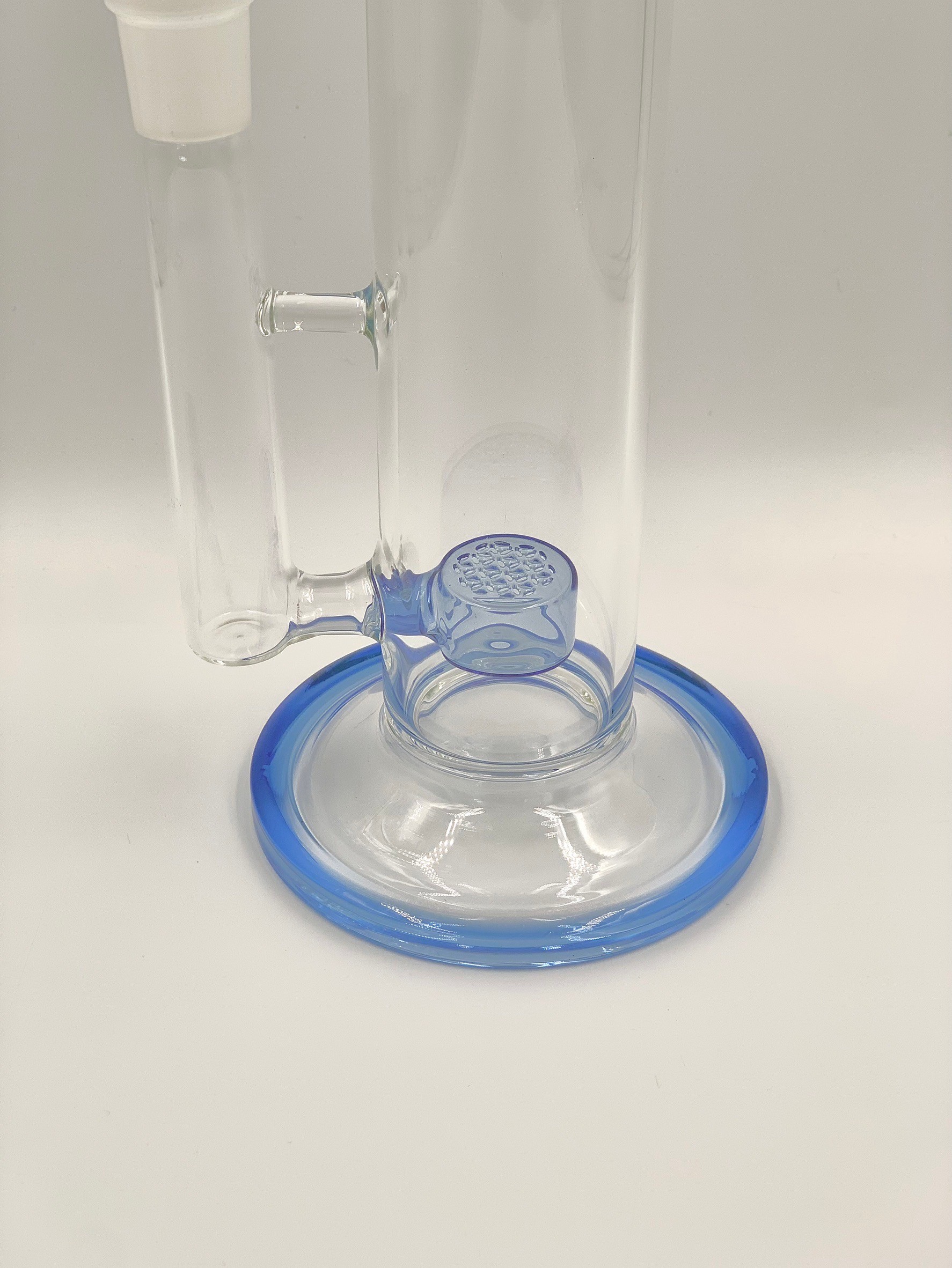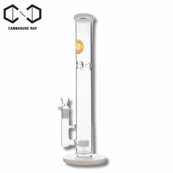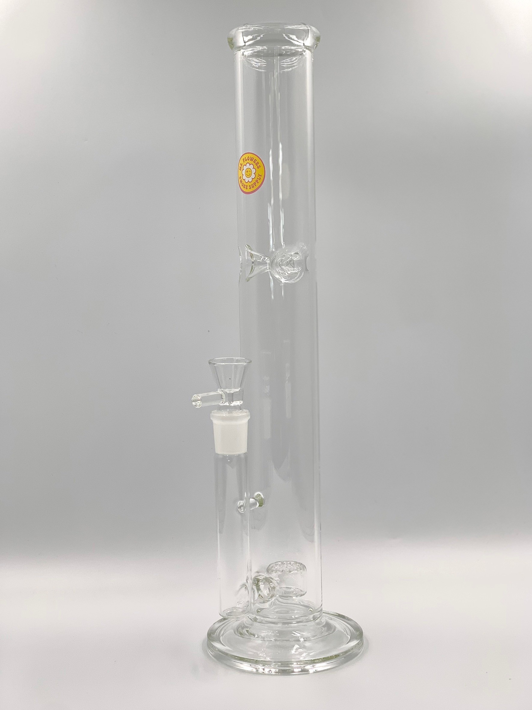The Ms. Flowers® Straight Tube is 16" tall and made from craft borosilicate tubing. It features an ice catcher perc in the neck of the piece to place ice cubes in to cool the smoke as it enters your lungs. This piece also includes a glass bowl with handle as well as a removable glass downstem with diffusion flower of life perc. It's flared base provides additional stability for when this piece is not in use.