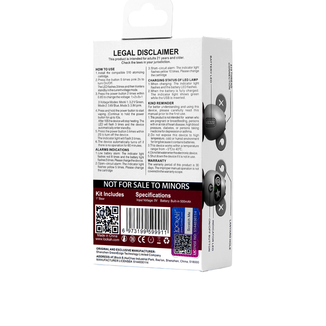 LOOKAH Bear 510 Thread Vape Pen Battery |
