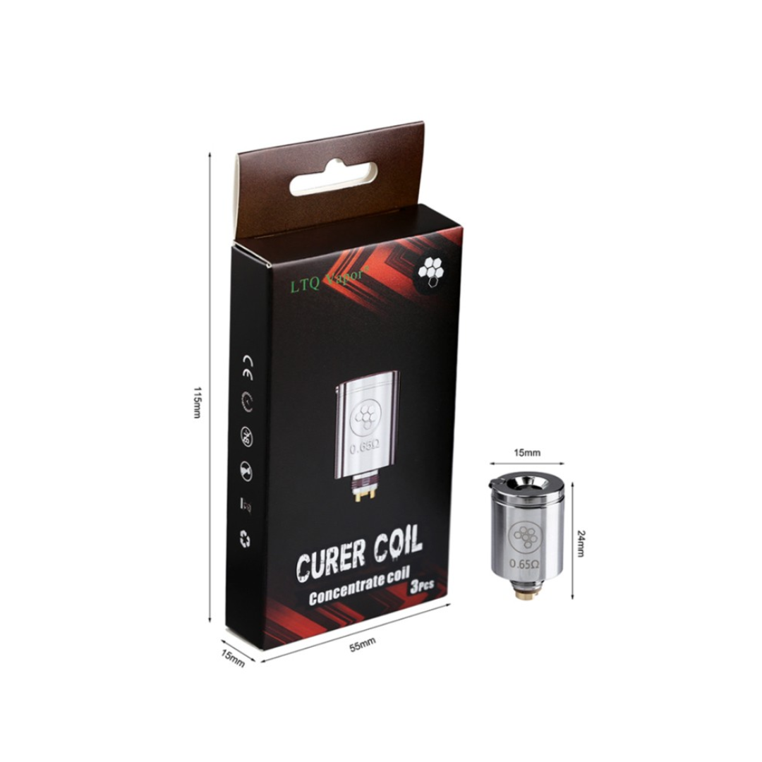 LTQ Vapor CURER Coils is specially fit for the Ltq vapor CURER Kit, it has stainless steel, ceramic and quartz coils to choose from. They are 0.4ohm dry herb coil; 0.65ohm concentrate wax coil and 1.4 oil coil. It has a unique atomization ability for various atomized substances such as concentrate, flower, and oil. What's more intimate is that you don't need to worry about the aging or dirt of the coil. You can change to a new coil at any time after using it for a certain period of time. 3 coil resistance for you to choose; 3pcs each pack.