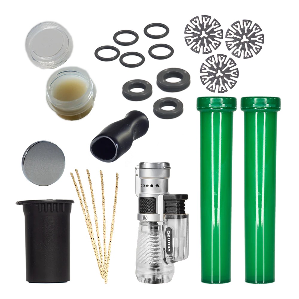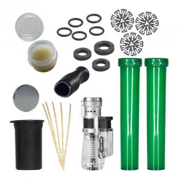 This Kit includes the accessories you will need to keep your DynaVap device happy. The Deluxe kit includes all of the items in the Basic DynaKit, and then some. Premium Titanium CCD screens are included, along with a strong DynaMag which is included to provide touch-free handling of a hot Cap. A triple torch lighter will provide optimal heating results and a SnapStash was added for smaller storage.