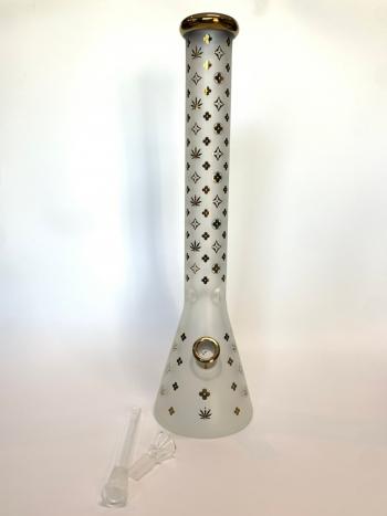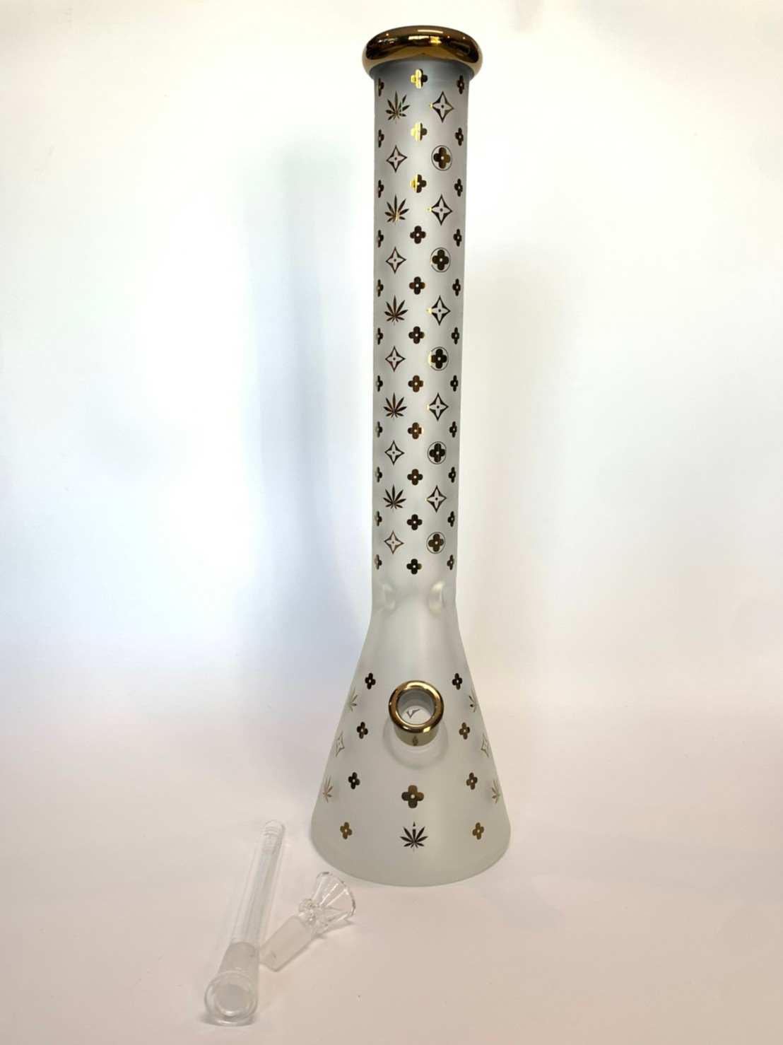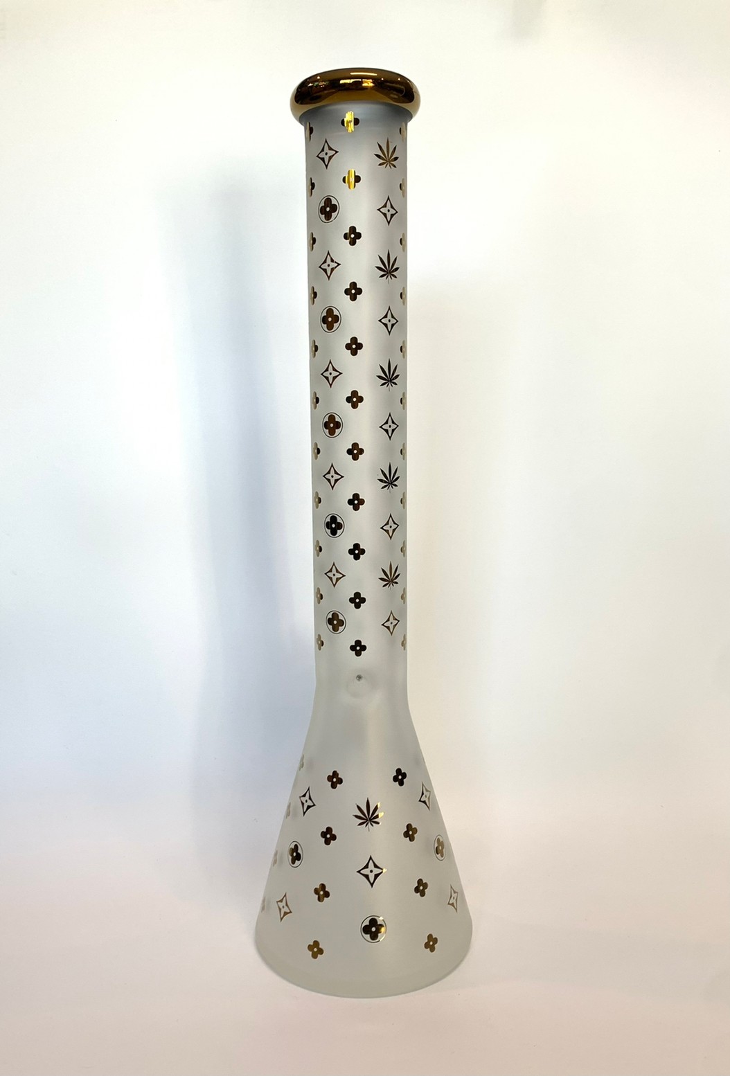 บ้องแก้ว บ้องกัญชา Sandblasted บ้องแก้วทรงบีกเกอร์ ลาย LV บีกเกอร์คือทรงยอดฮิตและทรงจบของสหายสายเขียวหลายๆท่าน