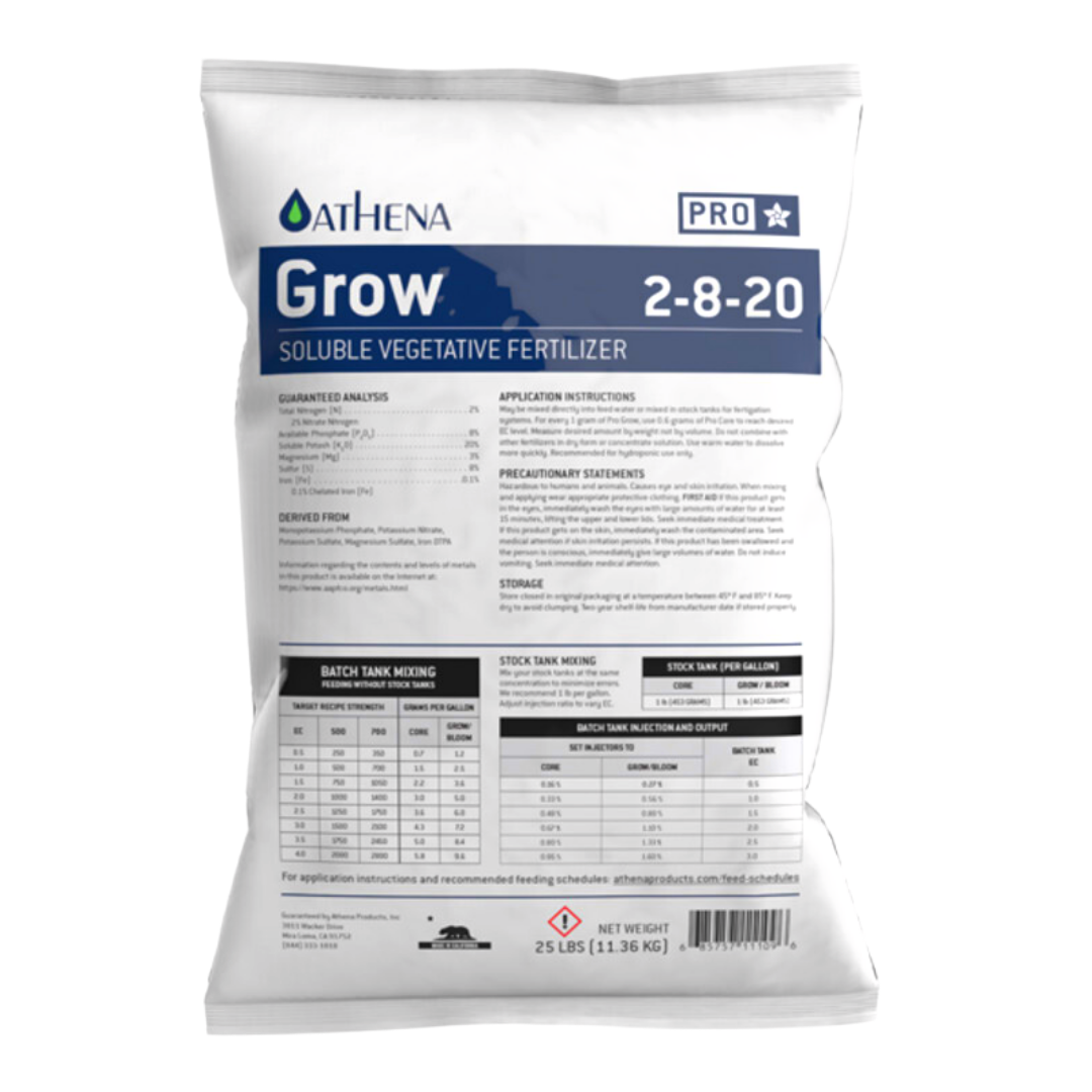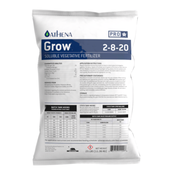 Athena Pro Grow เป็นปุ๋ยผสมที่ละลายน้ำได้สมดุลซึ่งจัดทำขึ้นสำหรับผู้เพาะปลูกเชิงพาณิชย์เพื่อเพิ่มความคล่องในการปลูก