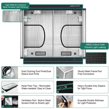 - เหมาะสำหรับปลูกต้นไม้จำนวน : 12~18 ต้น (แล้วแต่ขนาดของกระถาง) - พัดลมที่แนะนำ : 8 นิ้ว Inline Fan หรือ 2*6 นิ้ว Inline Fan