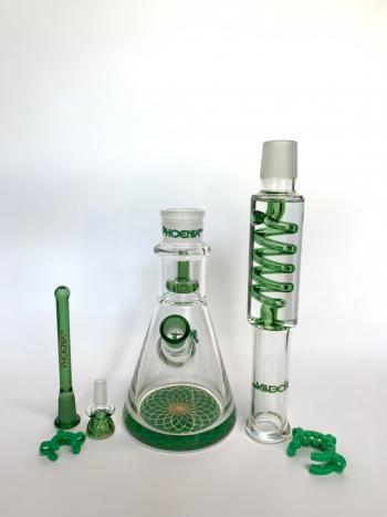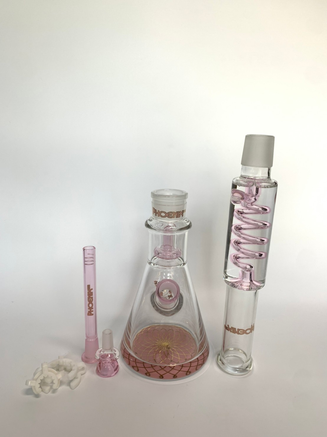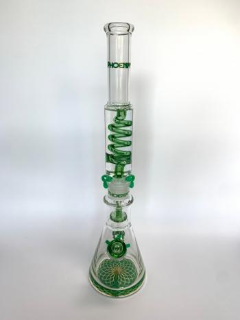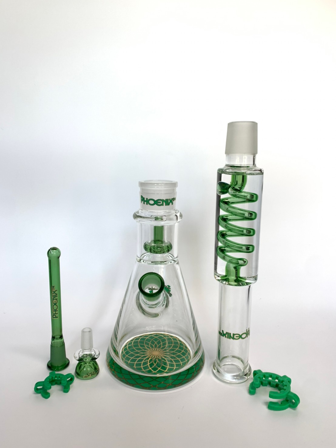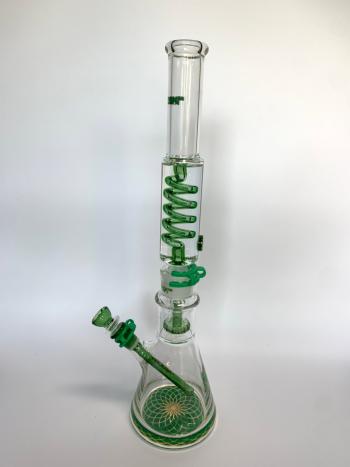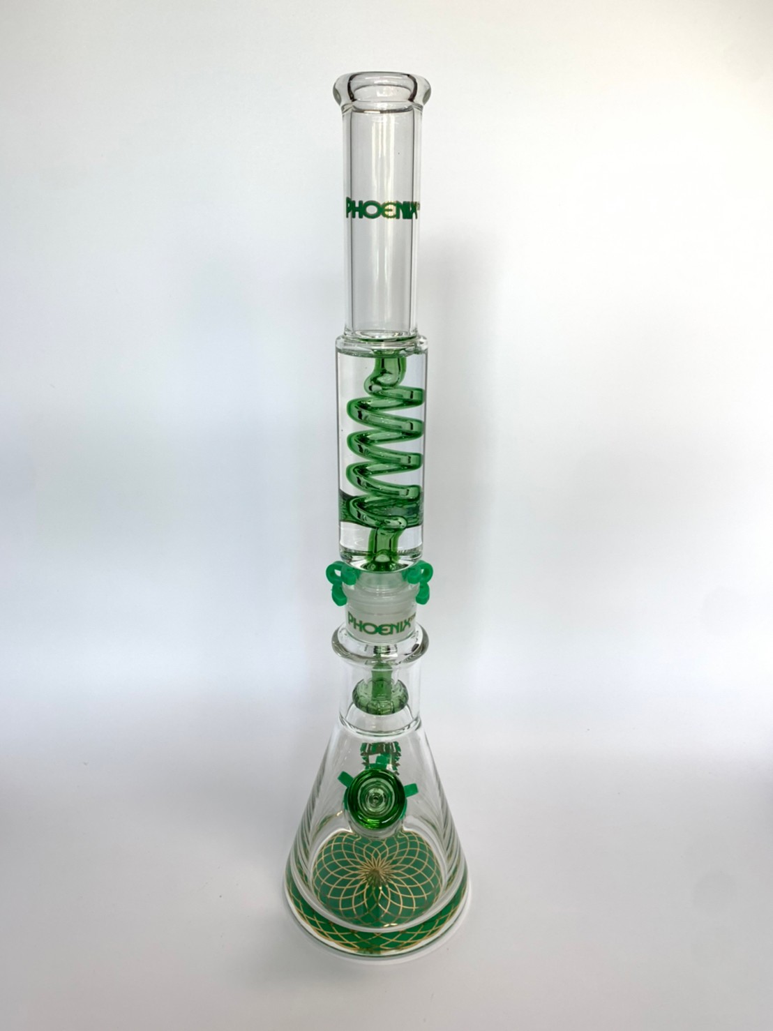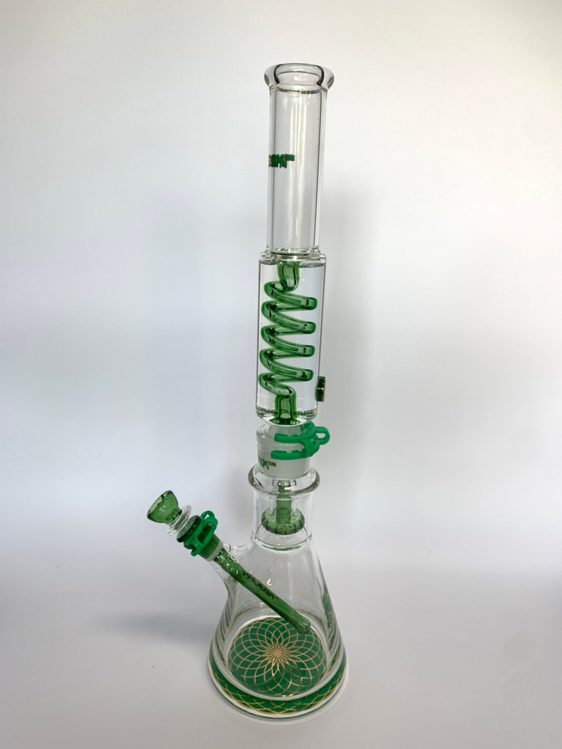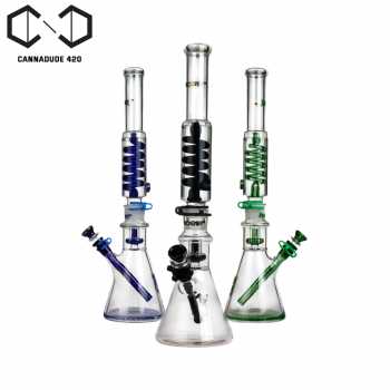 บ้องแก้ว บ้องกัญชา บ้องแก้วทรงบีกเกอร์ พร้อม Glycerin Coil หรือคอยด์เย็น บีกเกอร์คือทรงยอดฮิตและทรงจบ ผลิตจาก แก้ว Pyrex หรือ Borosilicate glass