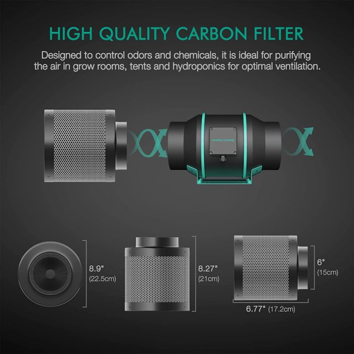 - ฟรี! ผ้ากรองฝุ่นภายนอกสามารถถอดซักได้ – มีผงคาร์บอนภายในจำนวนมากเพื่อดูดกลิ่น – เหมาะกับพัดลมดูดอากาศขนาด 6 นิ้ว ตามขนาดพัดลม