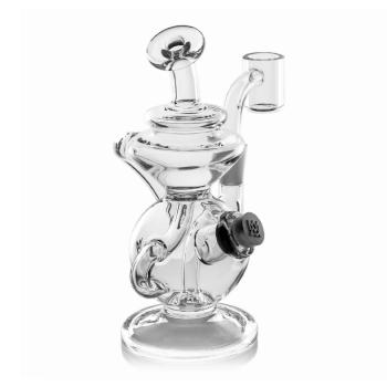The Mini Jig Dab Rig is feature-packed mini rig with a base-connected percolator, a single uptake recycler, and an integrated storage jar.
