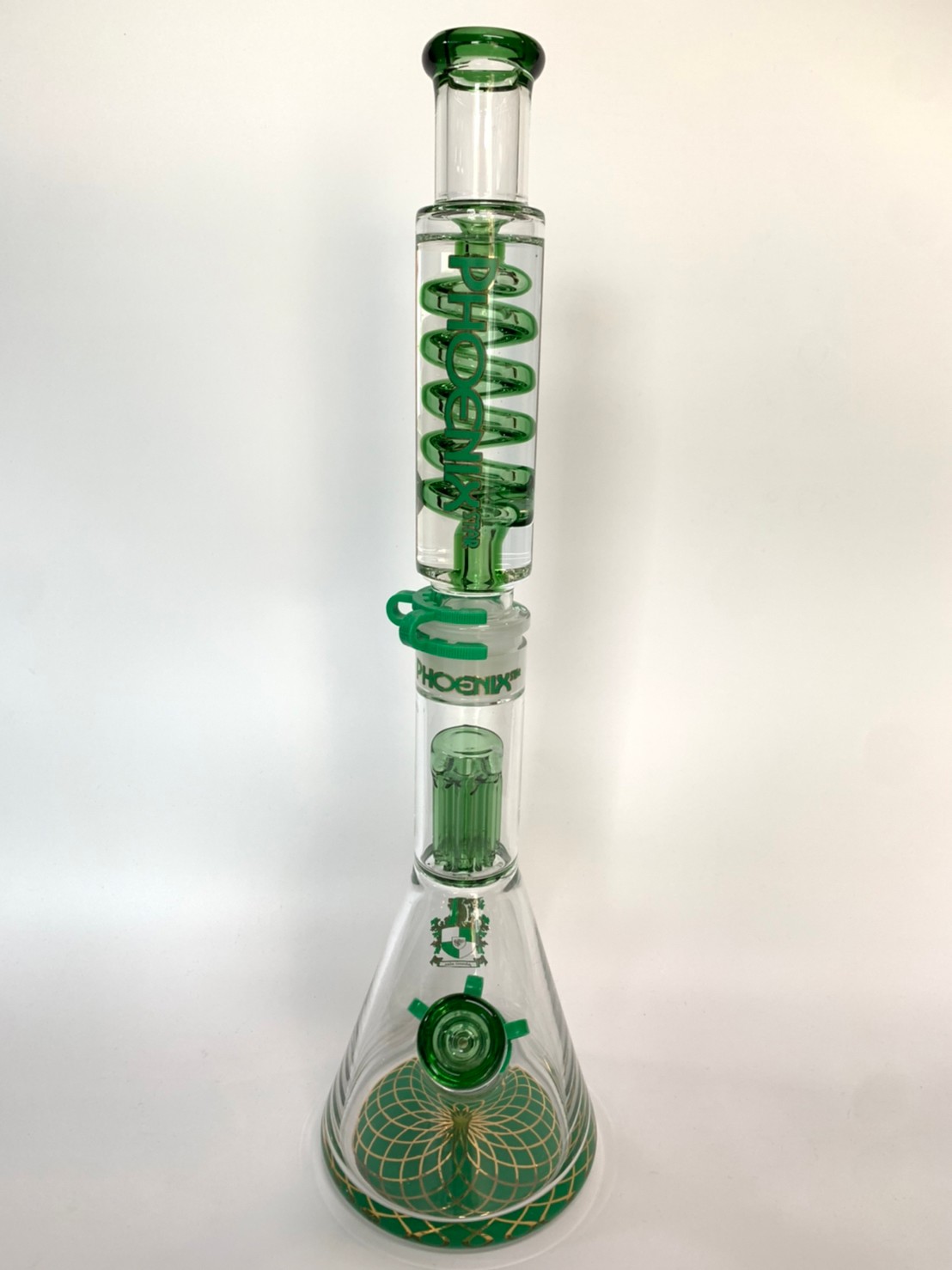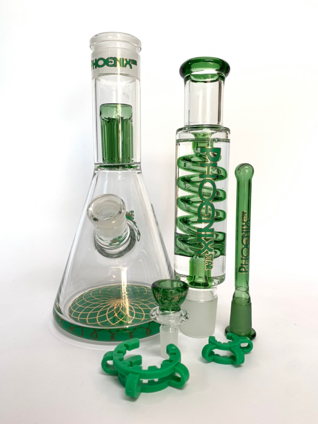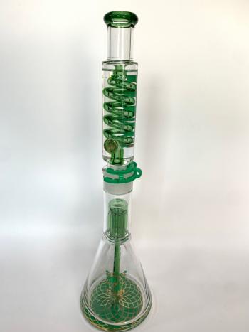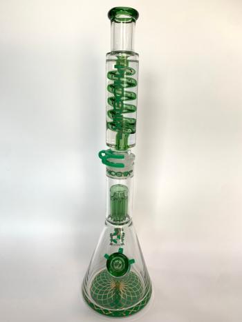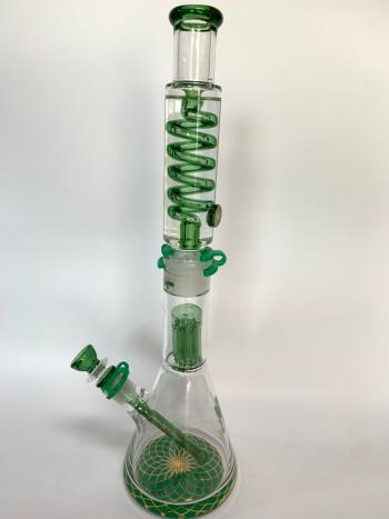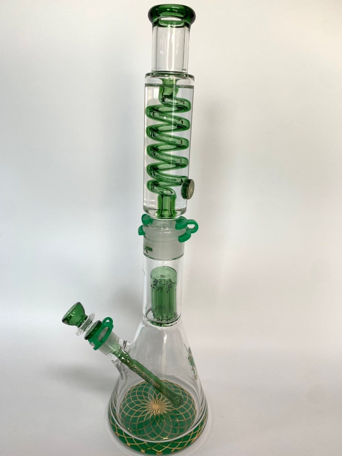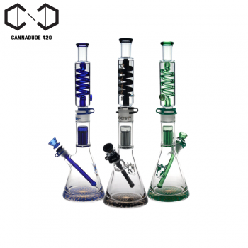 บ้องแก้ว บ้องกัญชา บ้องแก้วทรงบีกเกอร์ พร้อม Glycerin Coil หรือคอยด์เย็น บีกเกอร์คือทรงยอดฮิตและทรงจบ ผลิตจาก แก้ว Pyrex หรือ Borosilicate glass