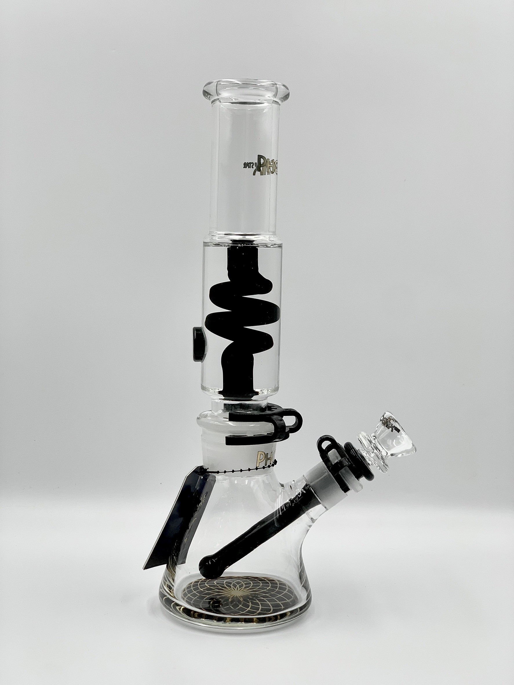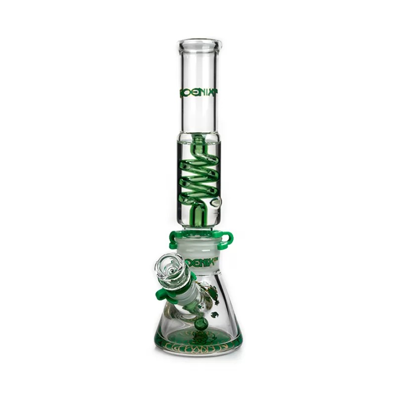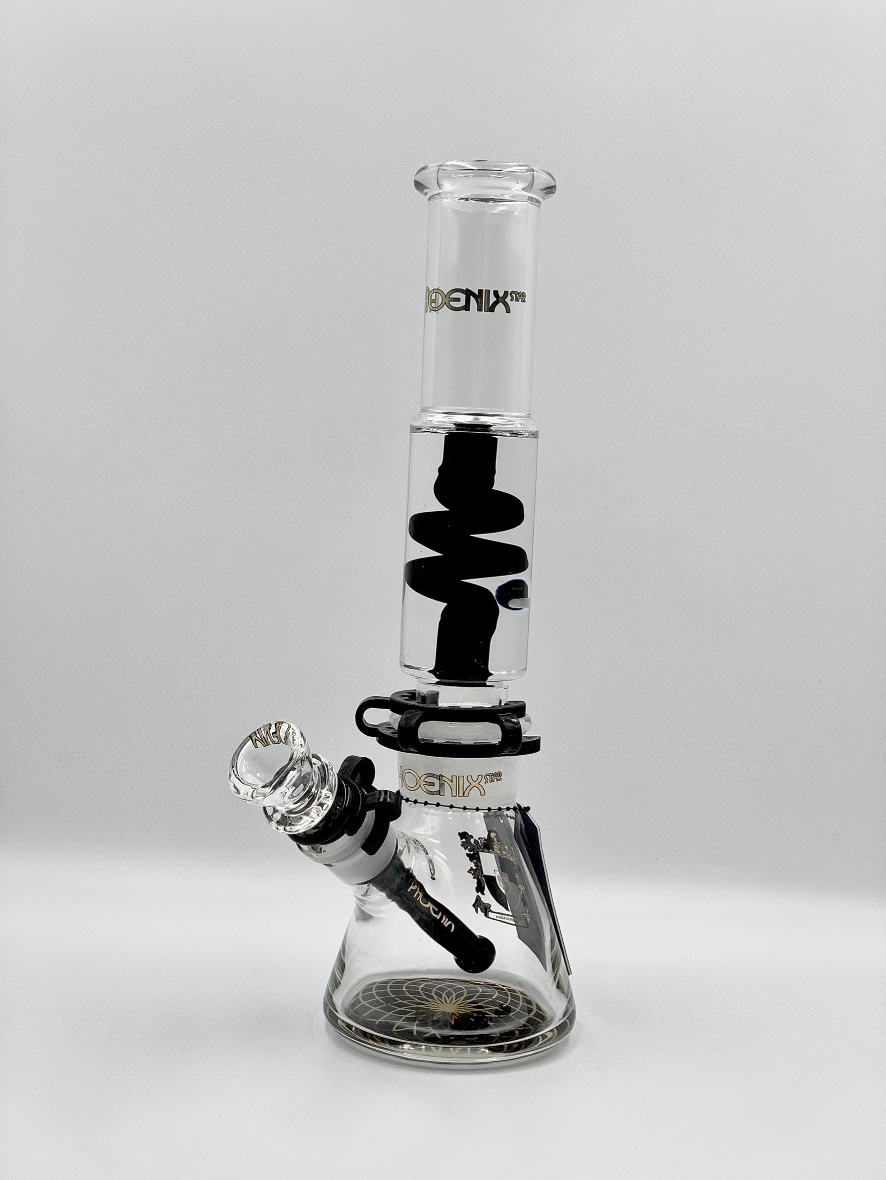 บ้องแก้ว บ้องกัญชา บ้องแก้วทรงบีกเกอร์ พร้อม Glycerin Coil หรือคอยด์เย็น บีกเกอร์คือทรงยอดฮิตและทรงจบ ผลิตจาก แก้ว Pyrex หรือ Borosilicate glass