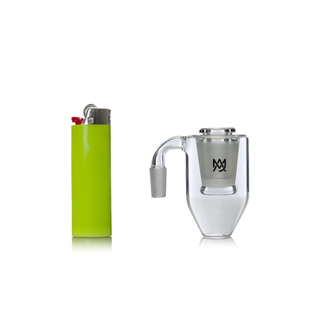 Our novel device features a removable 18mm to 10mm insert, allowing for various size quartz options and providing TRUE accessibility for users who prefer reloading their buckets with reclaimed oil on the go. With this unique accessory, you can efficiently recycle your dabs and keep your rigs and water pipes pristine like never before.