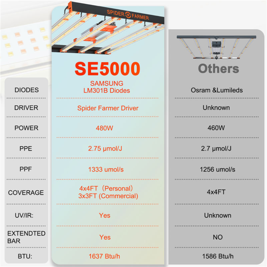 SPIDER FARMER SE5000W 480W FULL SPECTRUM LED GROW