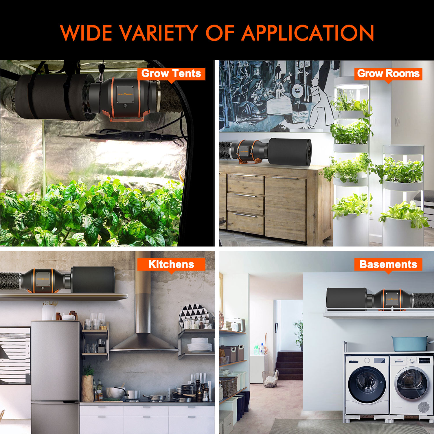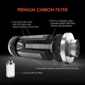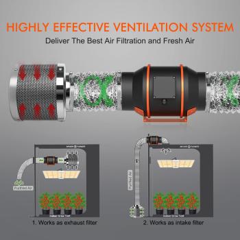 พัดลมแบบอินไลน์ Spider Farmer และตัวกรองคาร์บอนช่วยขจัดกลิ่นไม่พึงประสงค์ได้อย่างมีประสิทธิภาพ เหมาะสำหรับใช้ในเต็นท์ปลูกต้นไม้หรือพื้นที่ปลูกในที่ปิด แผ่นกรองคาร์บอนทำให้บริสุทธิ์และกรองเชื้อรา สปอร์ ฝุ่น ละอองเกสร กลิ่น และอนุภาคที่เป็นอันตรายอื่นๆ ตัวควบคุมอุณหภูมิและความชื้นทำให้การไหลเวียนของอากาศเป็นไปโดยอัตโนมัติ โดยรักษาสภาพการเจริญเติบโตที่เหมาะสมที่สุดเพื่อผลผลิตที่ดีขึ้นและสุขภาพที่ดีของพืช