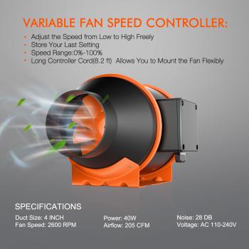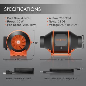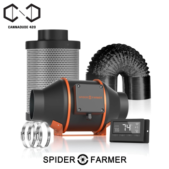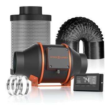 SPIDER FARMER 4 INCH 205 CFM INLINE FAN WITH THERMOSTAT CONTROLLER,CARBON FILTER & DUCTING COMBO