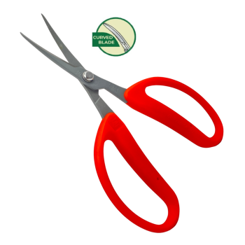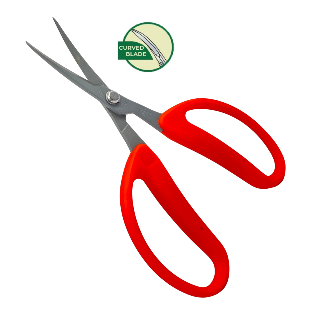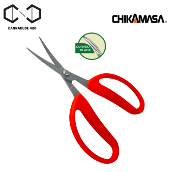 กรรไกร Chikamasa พร้อมใบมีดโค้งช่วยให้ได้มุมตัดที่โค้งมน กรรไกรเหล่านี้มีใบมีดเคลือบฟลูออรีน ทำให้ตัดได้ง่ายเนื่องจากเรซินจะไม่ติด การเข้าถึงลำต้นที่เข้าถึงยากนั้นทำได้ง่ายด้วยใบมีดโค้ง เนื่องจากคุณสามารถเดินตามแนวธรรมชาติของพืชได้