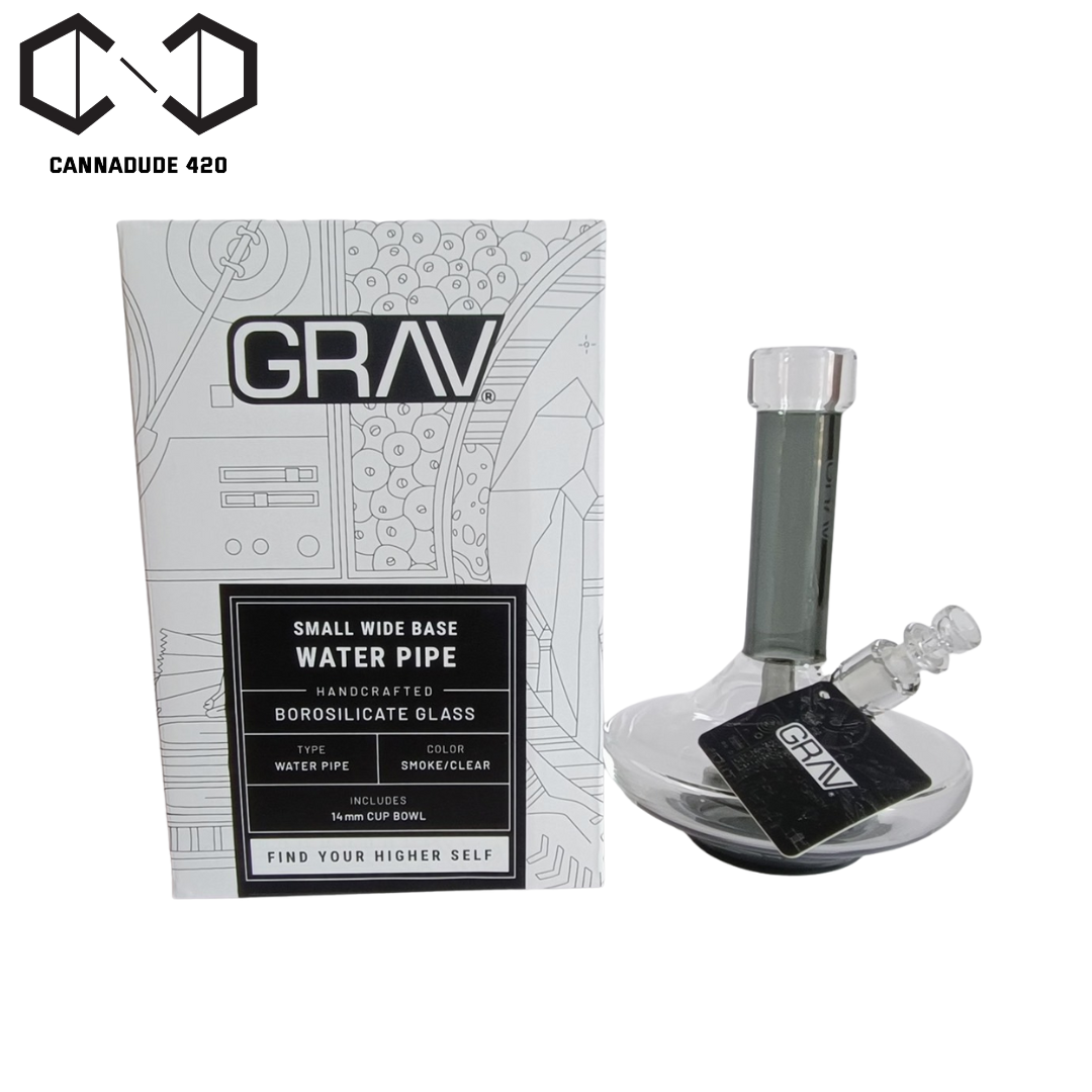 GRAV Small Wide Base Water Pipe - Smoke With Clear Accents 8"